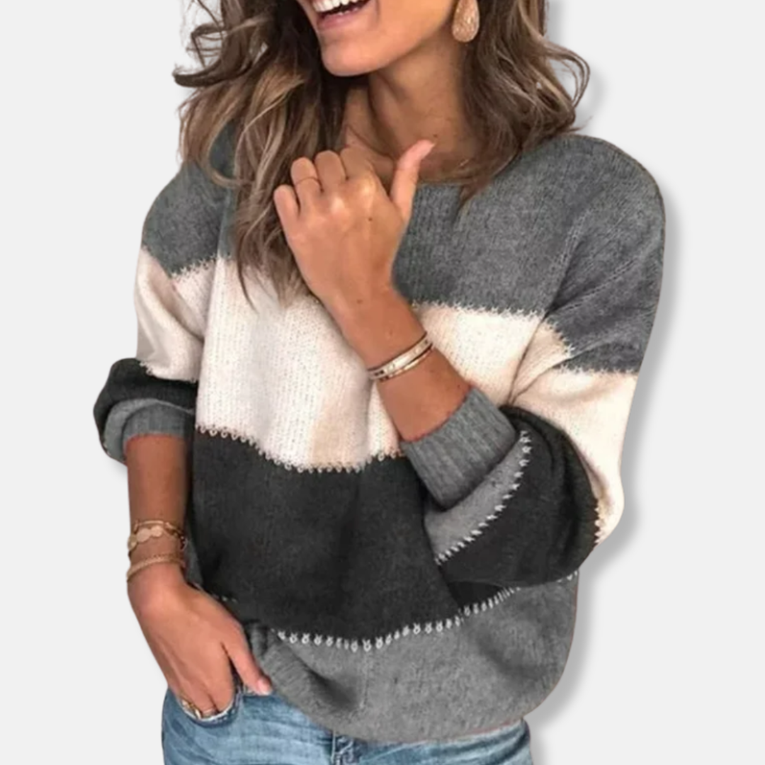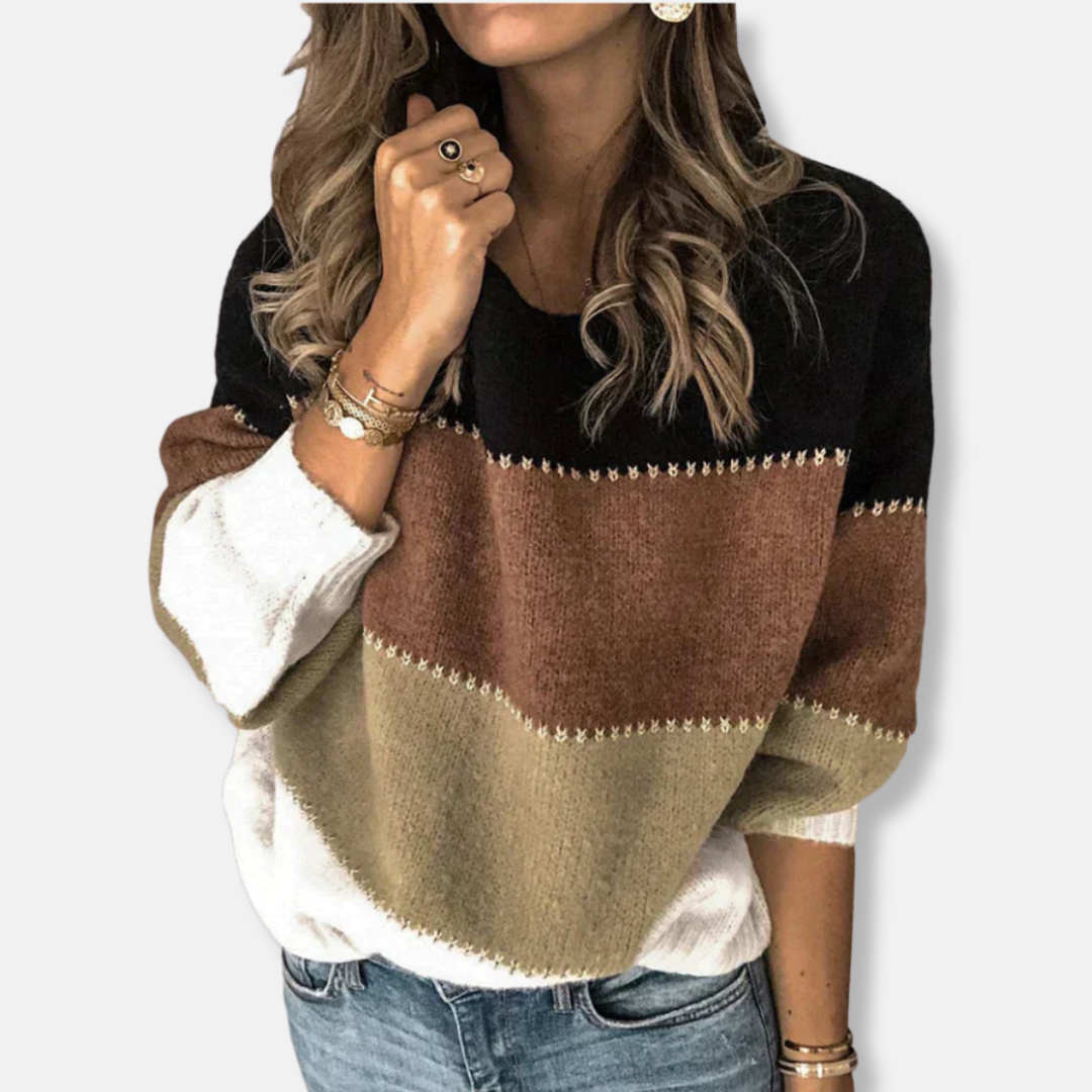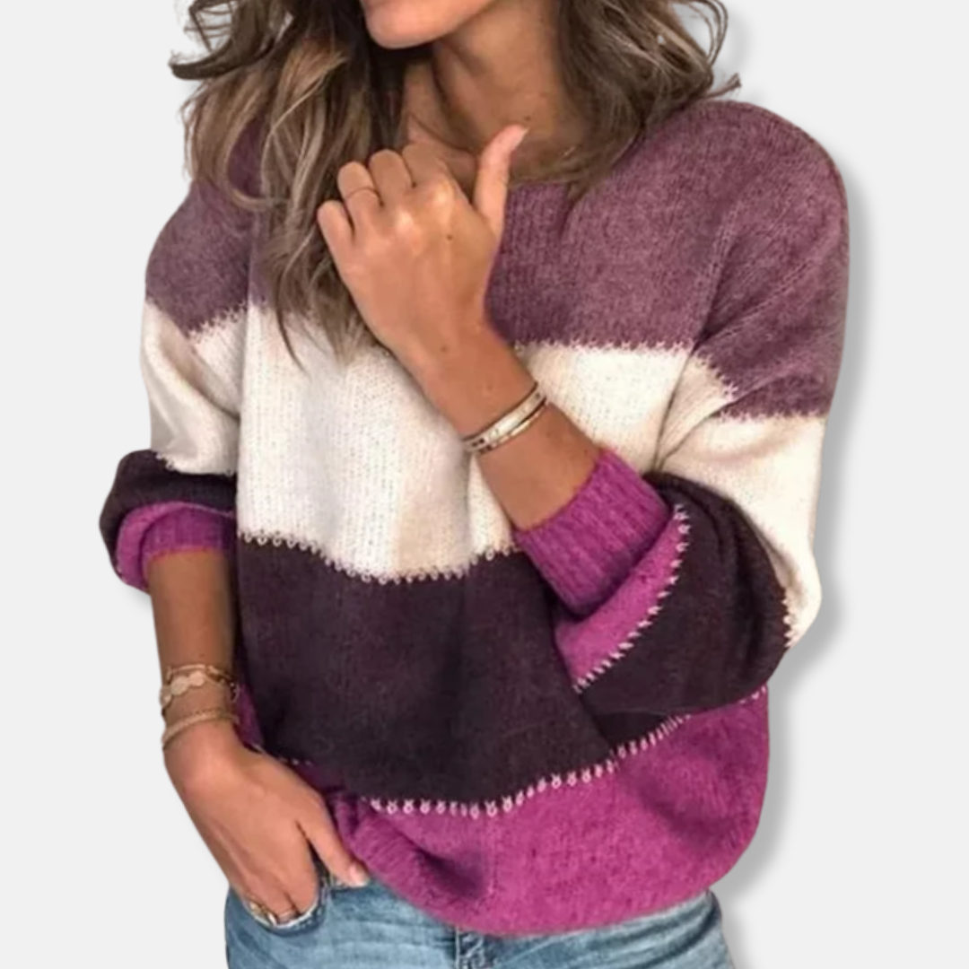 Den mysiga Ella-tröjan kombinerar avslappnad komfort med modern stil. Med sina breda ränder i harmoniska jordtoner ger den en varm och trendig känsla som passar perfekt för kyligare dagar. Den lösa passformen och mjuka stickade materialet gör den idealisk för både vardag och lediga helger.