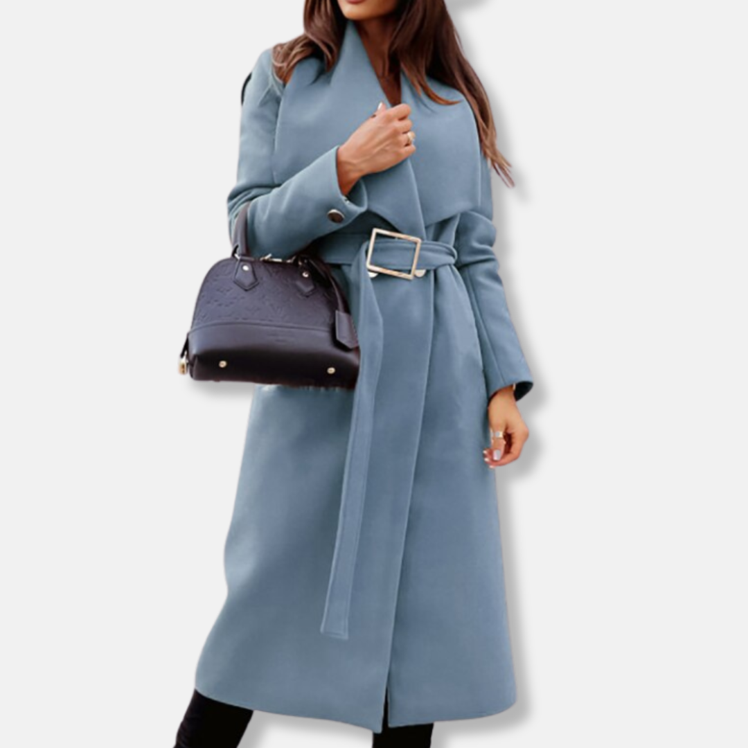 Denna eleganta omlottkappa för kvinnor är designad för vardagsbruk. Med sin raka passform och mellanlånga silhuett erbjuder den en sofistikerad look. Den långärmade designen med krage och slag kompletteras av ett skärp som framhäver midjan, och den enfärgade kappan har en omlottdesign som ger en tidlös elegans.