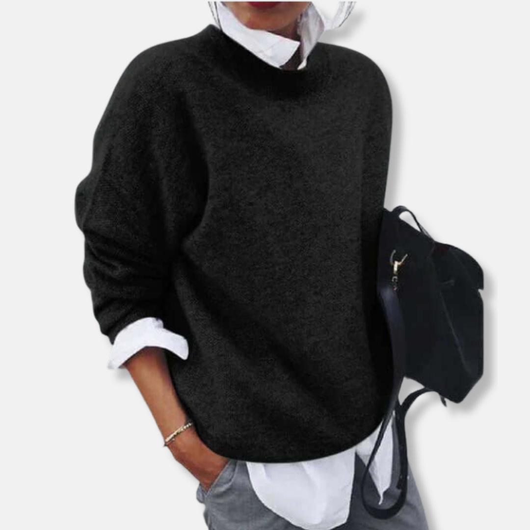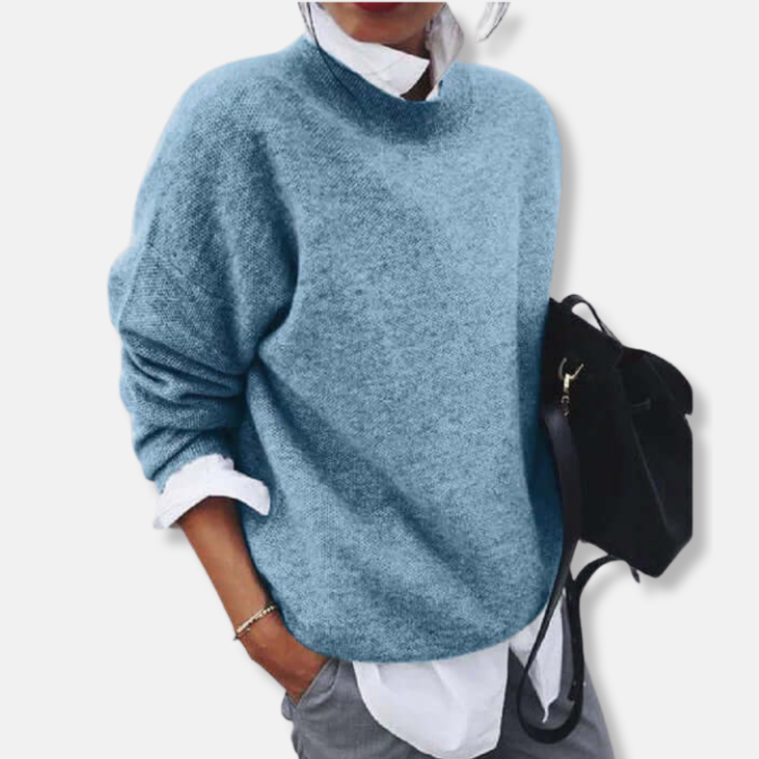 Denna avslappnade tröja med rund hals och lång ärm är ett mångsidigt tillskott till din garderob. Perfekt för kvinnor som söker en bekväm stil för vardagliga tillfällen, den har en enfärgad design och en stickad textur som faller till höften.